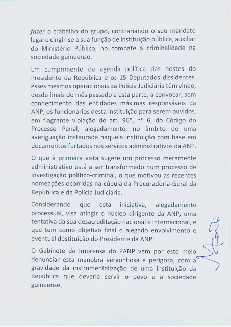 Na nota, o gabinete explica, citando fontes não identificadas, que durante as manifestações de 16 e 17 do mês corrente, realizadas pelo Coletivo de partidos democráticos, esteve em curso um plano para a eliminação física de Cipriano Cassamá e Domingos Simões Pereira.